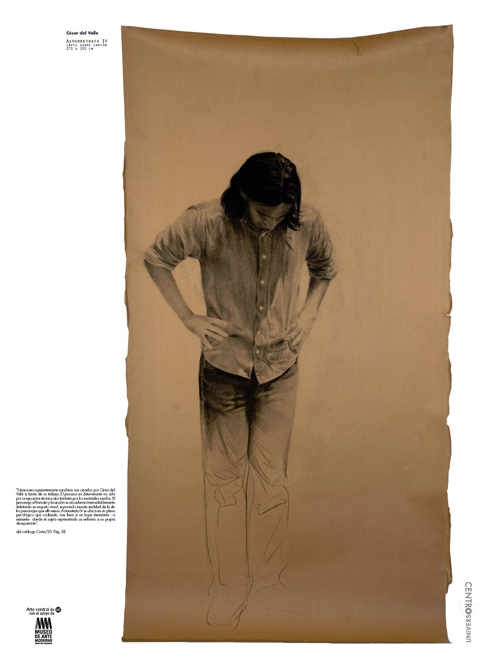 "Situaciones aparentemente anodinas son creadas por César del Valle a través de su trabajo. El proceso es determinante no sólo por su ejecución técnica sino también por los materiales usados. El personaje, el formato y la acción se encadenan irremediablemente delatando un engaño visual, separando nuestra realidad de la de los personajes que allí vemos. Autorretrato IV se ubica en un plano psicológico que oscilando, nos lleva a un lugar inexistente –o existente– donde el sujeto representado se enfrenta a su propia desaparición". del catálogo Corte/50. Pág. 38.