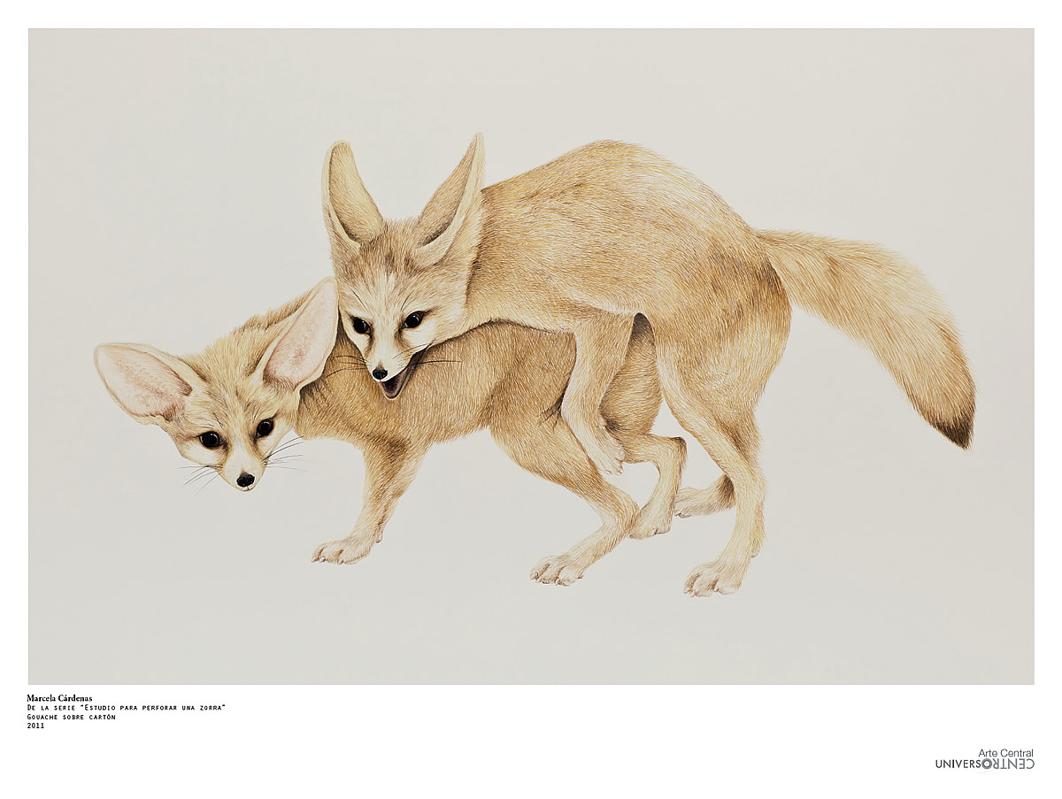 Marcela Cárdenas De la serie "Estudio para perforar una zorra" Gouache sobre cartón 2011
